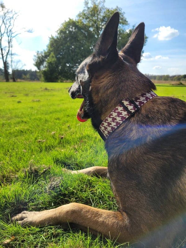 Pied-de-Poule collectie is gemaakt van een stevige stof en garen. De dikte van de band is 4 cm dik, waardoor hij beschikbaar is in de maten M,L en XL.